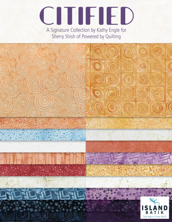 Meet Citified, a gorgeous new line of Island Batiks for Sherry Shish of Powered by Quilting. This is the fourth time I have been lucky enough to participate in Sherry's Blog Tour. This is her fourth signature line is designed by in-house Island Batik Designer Kathy Engle.